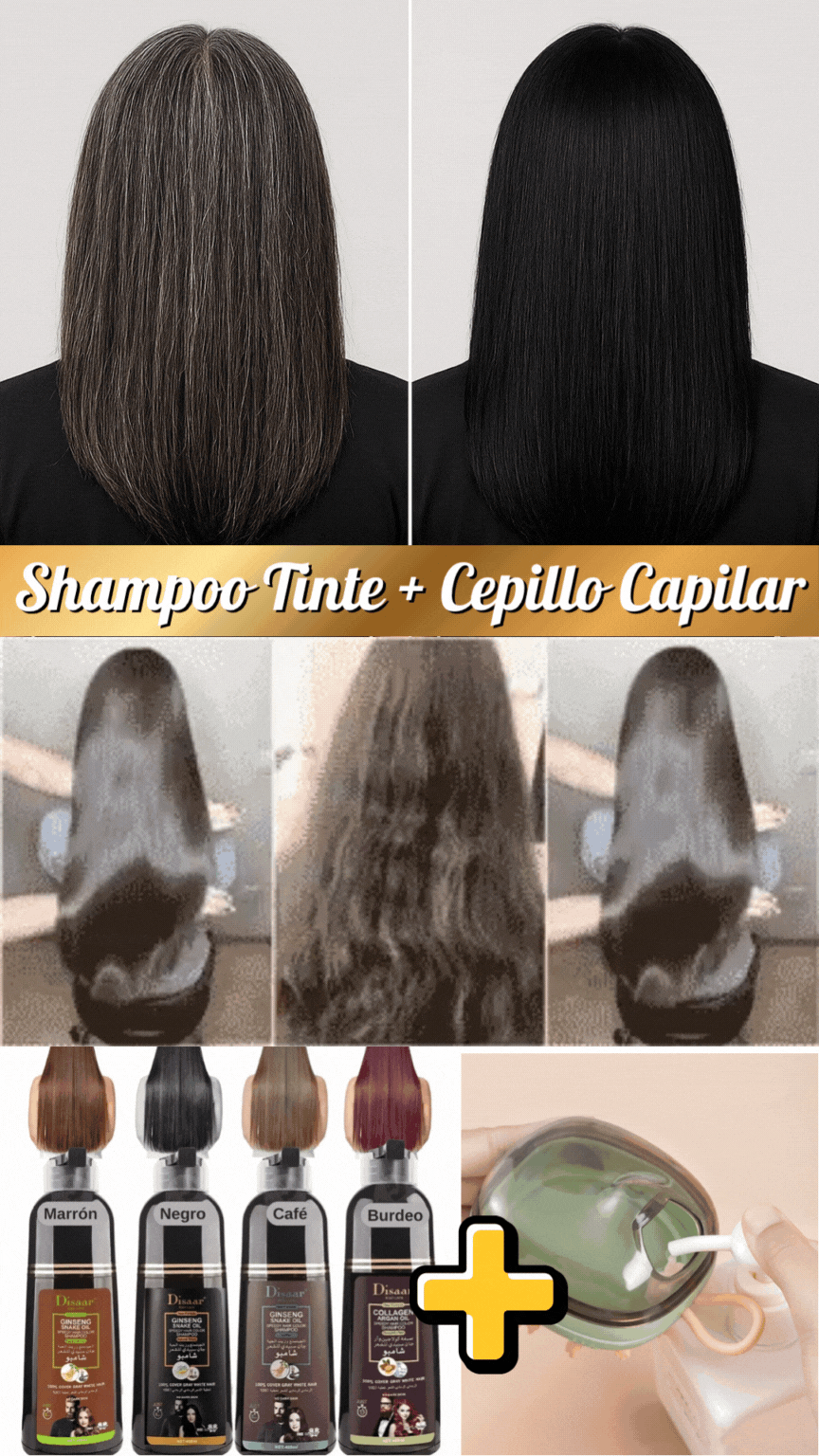 ✅ Cubre las canas al instante con nuestro shampoo colorante, ¡lucirás increíble sin salir de casa!