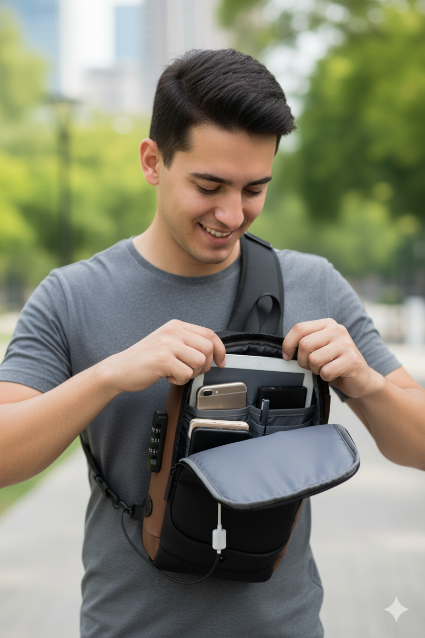 • 🚫 Antirobo frontal — Posición en pecho reduce hurtos típicos de mochila.